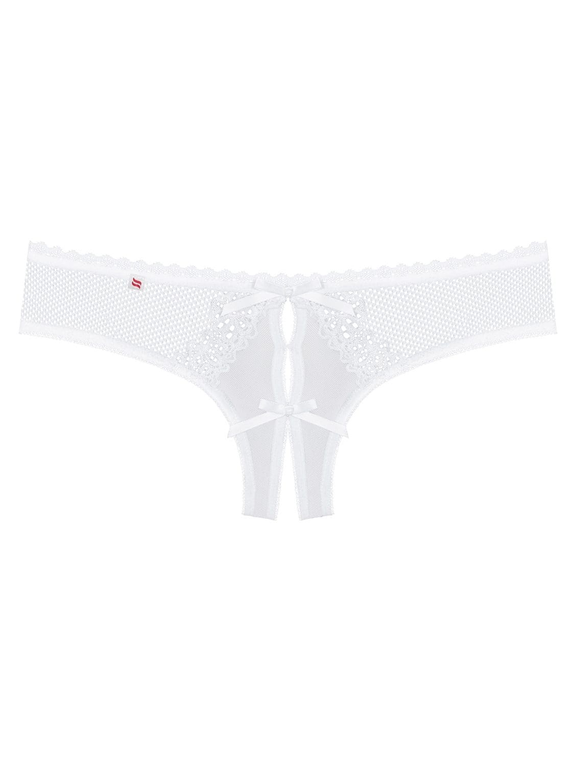 Odkryj pikantność z Alabastra Stringami Otwartymi. Białe, koronkowe stringi z kokardkami i otwartym krokiem to zaproszenie do zabawy. Elastyczny materiał (90% poliamid, 10% elastan) zapewnia komfort i przyjemność.