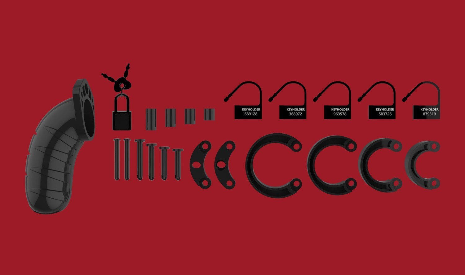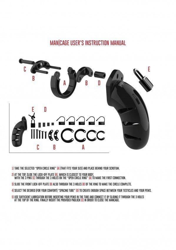 Klatki erekcyjne Man|Cage wyprodukowano z poliwęglanu wysokiej jakości. Jest to niebywale lekki, wytrzymały oraz hipoalergiczny materiał. Klatka składa się z trzech, perfekcyjnie dopasowanych elementów. Dwie spinki łączą górne elementy ze sobą, a węższa, owalna spinka, łączy pierścienie z klatką. Szeroki wybór pierścieni w różnych rozmiarach, znajdujących się w różnych odległościach od siebie pozwoli Ci na idealne dopasowanie sprzętu! Pierścienie gwarantują wygodę oraz bezpieczeństwo. Klatkę z łatwością zamknąć można z pomocą metalowej kłódeczki lub paska. Regulowany pasek gwarantuje, że nie wzbudzisz podejrzeń przechodząc przez bramki na lotnisku, festiwalu czy imprezie! Zachowanie higieny jest bardzo ważne. Sprzęt Man|Cage gwarantuje Ci odpowiednią wentylację oraz pozwala na bezproblemowe “odcedzenie kartofelków”. Klatka nie pozwoli Ci na osiągnięcie wzwodu podczas jej noszenia. Po jej zdjęciu natomiast, Twój penis będzie twardy jak skała! Klatka erekcyjna Man|Cage daje ogromną przewagę osobie, która posiada kluczyk!
