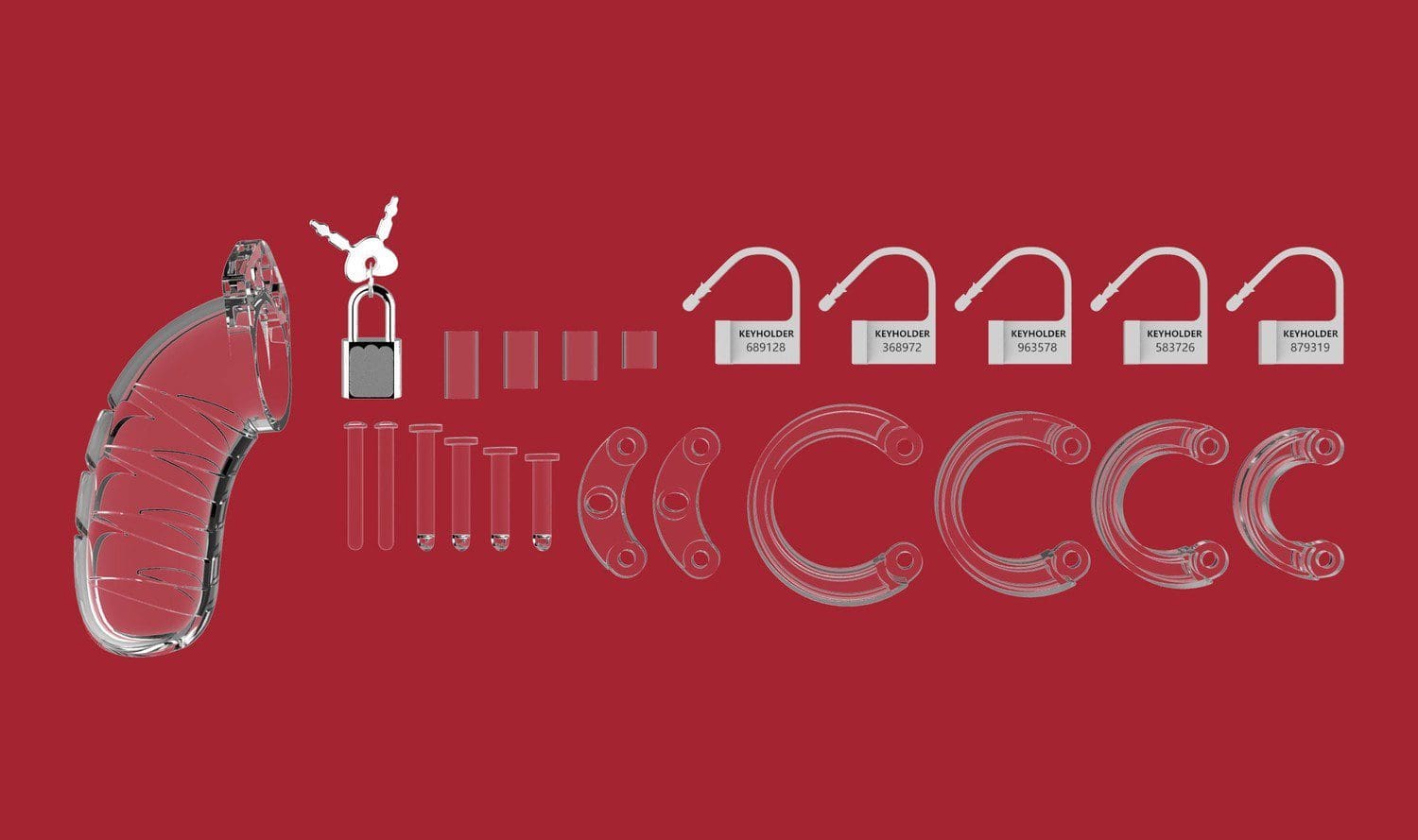 Przezroczysty pas cnoty Man Cage wykonany z lekkiego i hipoalergicznego poliwęglanu. Składa się z trzech elementów, zapewnia wygodę i wentylację. Idealny do BDSM, gwarantuje kontrolę i bezpieczeństwo.
