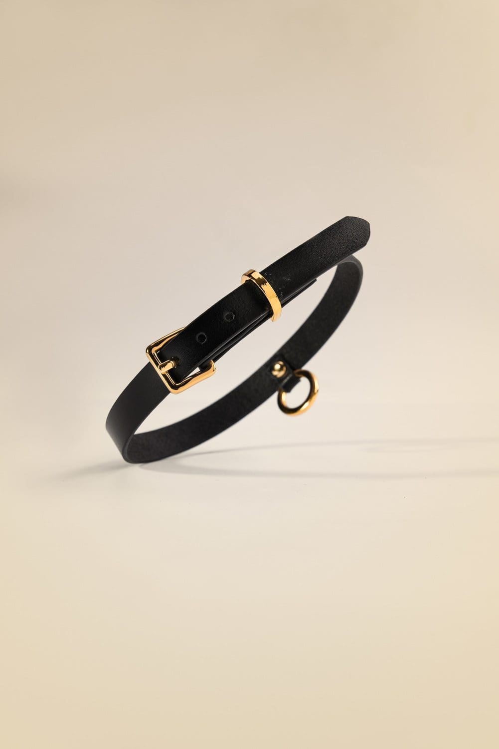 Delikatna skórzana obroża UPKO to elegancki dodatek, idealny na co dzień i do stylizacji BDSM. Wykonana z włoskiej skóry, regulowana i przyjemna w dotyku. Złoty pierścień umożliwia połączenie ze smyczą.
