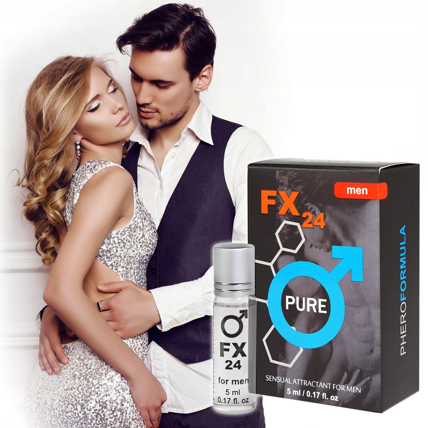 Feromony FX24 - PURE™ dla mężczyzn w butelce 5 ml z aplikatorem roll-on. Neutralny zapach przyciąga kobiety, zwiększając ich zainteresowanie. Idealne do intensywnego życia towarzyskiego. Działają przez 3-4 godziny.
