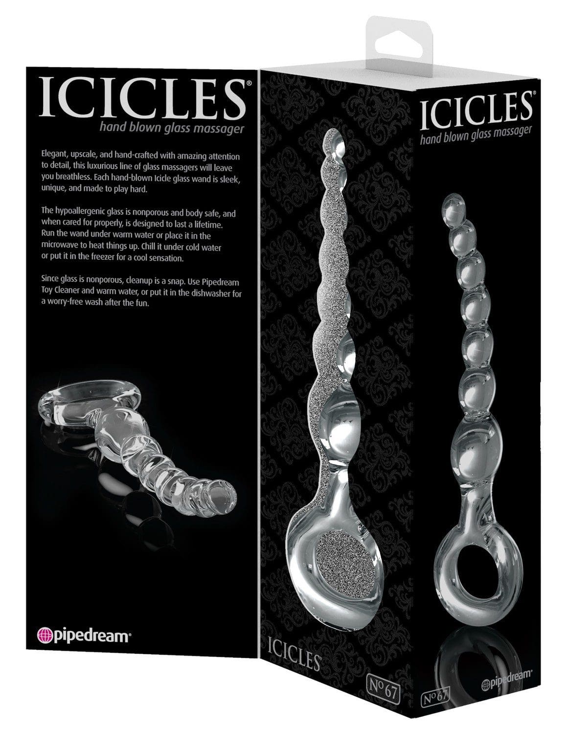 Icicles No. 67 to elegancki szklany dildo wykonane z bezpiecznego dla ciała szkła boro-krzemowego. Ręcznie dmuchane, łatwe w czyszczeniu. Idealne do eksploracji przyjemności w luksusowym stylu.