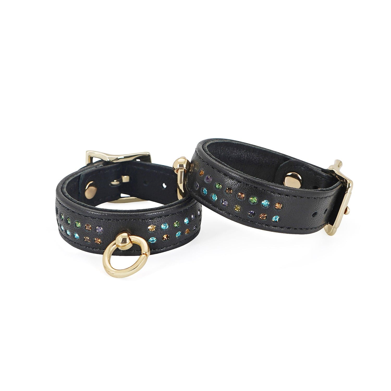 Ekskluzywne kajdanki na kostki Liebe Seele Shining Girl Anklecuffs wykonane z wysokiej jakości skóry bydlęcej. Regulowana długość (19,5-24,5 cm) zapewnia komfort i bezpieczeństwo. Klejnoty dodają blasku i elegancji.
