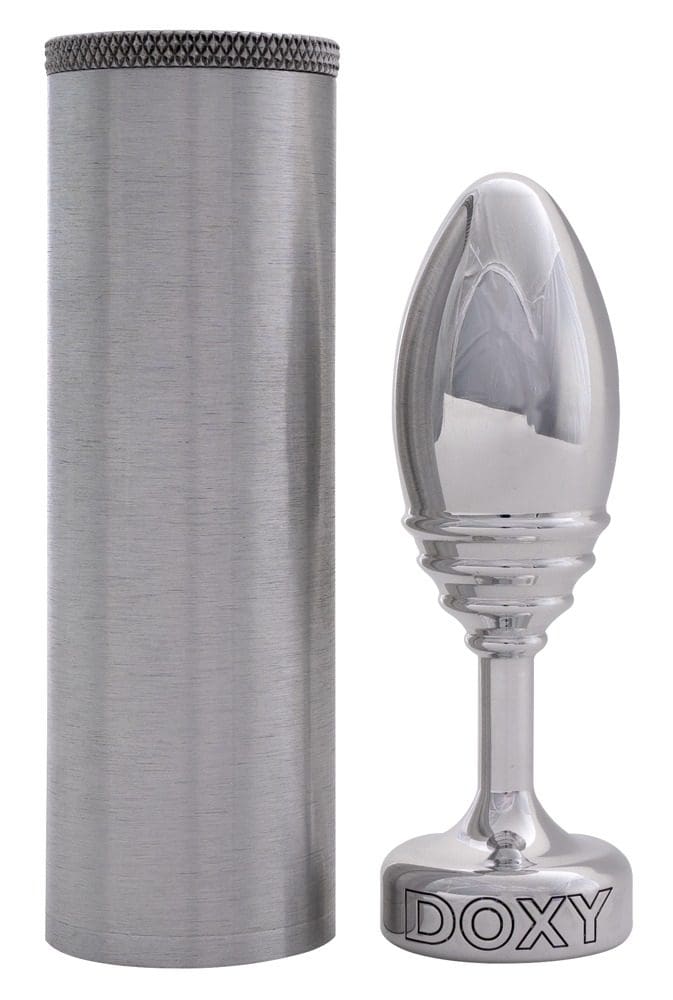 Elegancki korek analny Butt Plug Ribbed Doxy z litego aluminium. Stymulujące rowki, grawerowana podstawa zapewniająca bezpieczeństwo. Idealny do zabawy w różnych temperaturach. Waga 155 g, długość 10,5 cm.