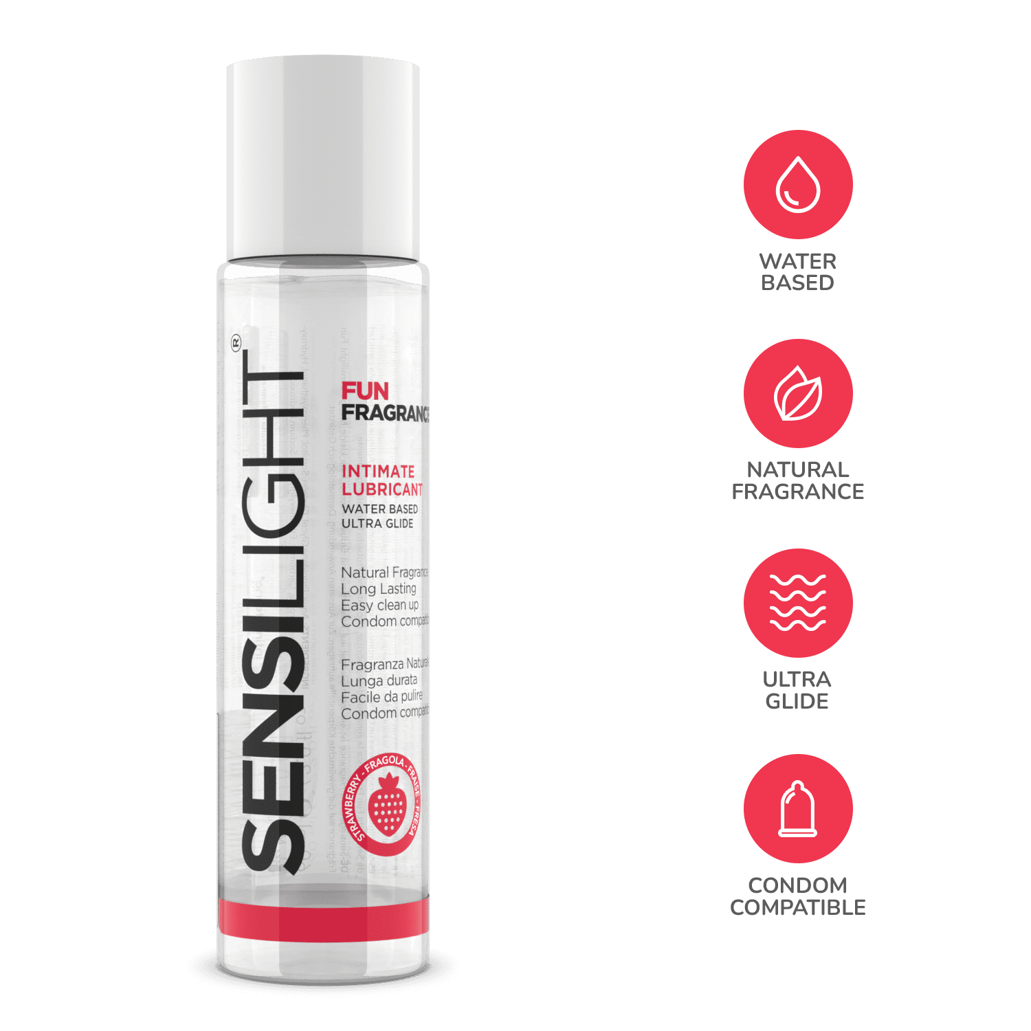 Sensilight Fun Fragrance Strawberry to delikatny lubrykant na bazie wody o słodkim aromacie truskawki, stworzony z myślą o dodaniu nuty zmysłowości do każdej intymnej chwili. Jego subtelny zapach pobudza zmysły i wprowadza wyjątkowy nastrój, nie wpływając przy tym na skuteczność działania. Zamiast sztucznych aromatów spożywczych zastosowano bezpieczne kompozycje zapachowe, które nie zaburzają konsystencji ani właściwości nawilżających żelu – dlatego nie należy go traktować jako produkt do spożycia.