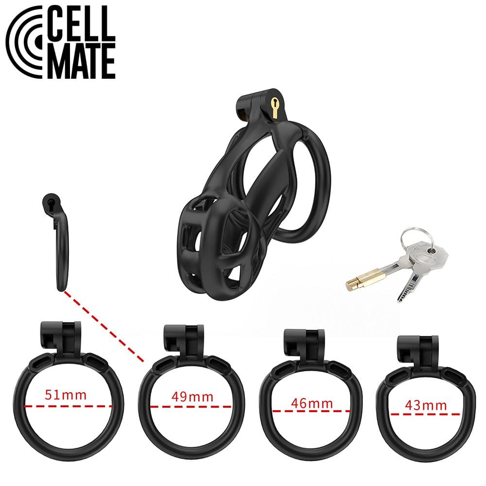 W zestawie z klatką znajdują się cztery ergonomicznie uformowane pierścienie o średnicach: 43 mm, 46 mm, 49 mm oraz 55 mm. Ich zadaniem jest utrzymanie całej konstrukcji w stabilnej pozycji – tak, by nie istniała żadna luka ani możliwość manipulacji. Odpowiedni dobór pierścienia eliminuje ryzyko wysunięcia się członka lub dostępu do skóry pod klatką. Po założeniu użytkownik staje się fizycznie odłączony od jednej z najważniejszych stref swojego ciała. Klucz przestaje być symboliczny – staje się koniecznością.