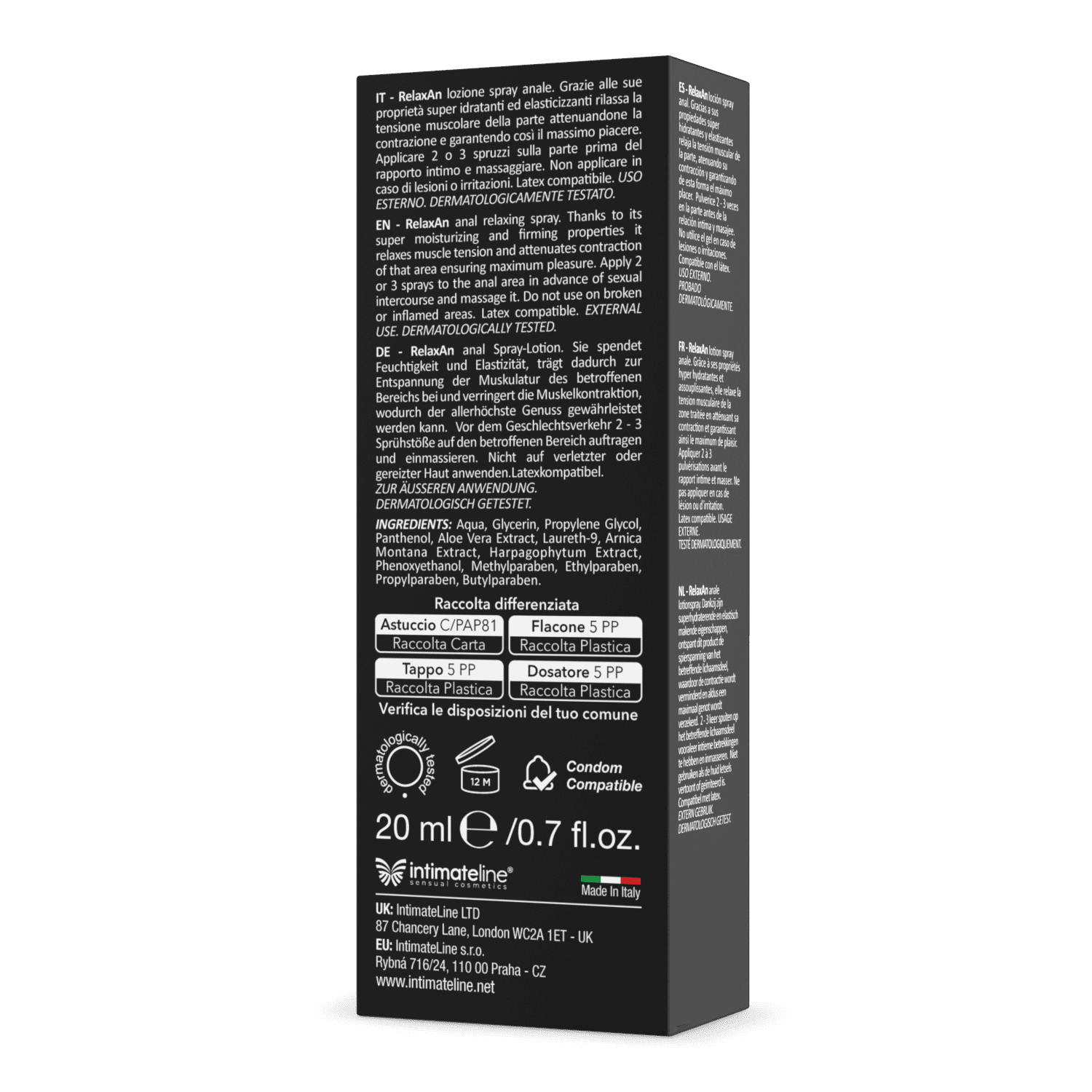 Relaxan jest w pełni bezpieczny do stosowania z prezerwatywami lateksowymi, co czyni go doskonałym wyborem do każdego rodzaju penetracji analnej – bez ryzyka, z pełnym komfortem. Aby uzyskać najlepszy efekt, należy nanieść 2–3 rozpylenia w okolice odbytu, delikatnie wmasować i odczekać chwilę przed rozpoczęciem gry. Nie stosować na uszkodzoną lub podrażnioną skórę.