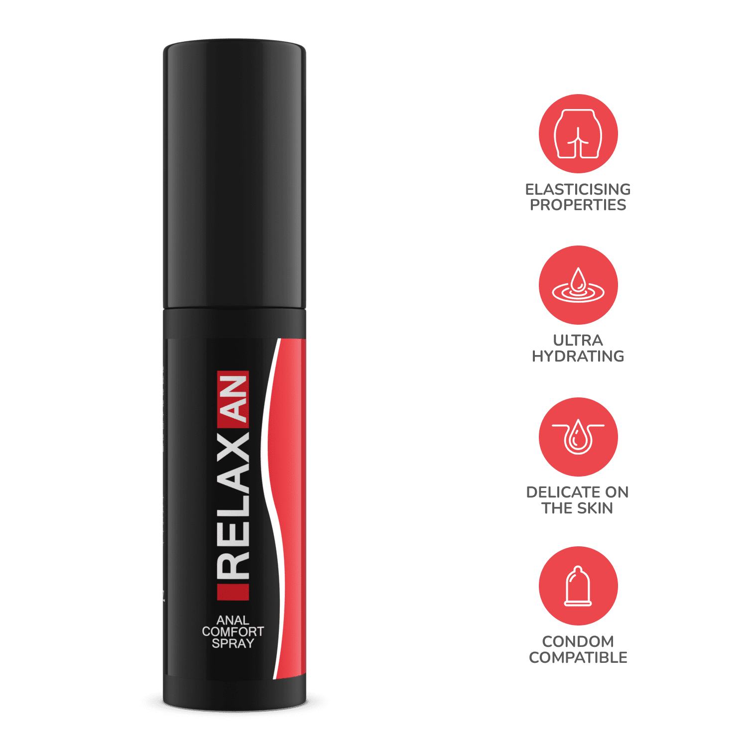 Relaxan to specjalistyczny spray intymny stworzony z myślą o komforcie podczas seksu analnego. Dzięki swojej ultranawilżającej i uelastyczniającej formule, skutecznie rozluźnia napięcie mięśniowe w okolicach odbytu, minimalizując dyskomfort i zwiększając przyjemność z penetracji. To doskonałe wsparcie dla osób, które chcą przeżyć analne uniesienie bez bólu i z pełną kontrolą nad ciałem.