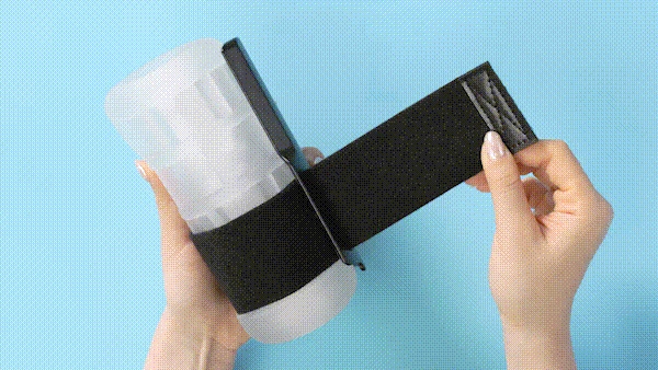- Zestaw trzech elementów – rękaw z fakturą, uniwersalny uchwyt oraz regulowany pasek.