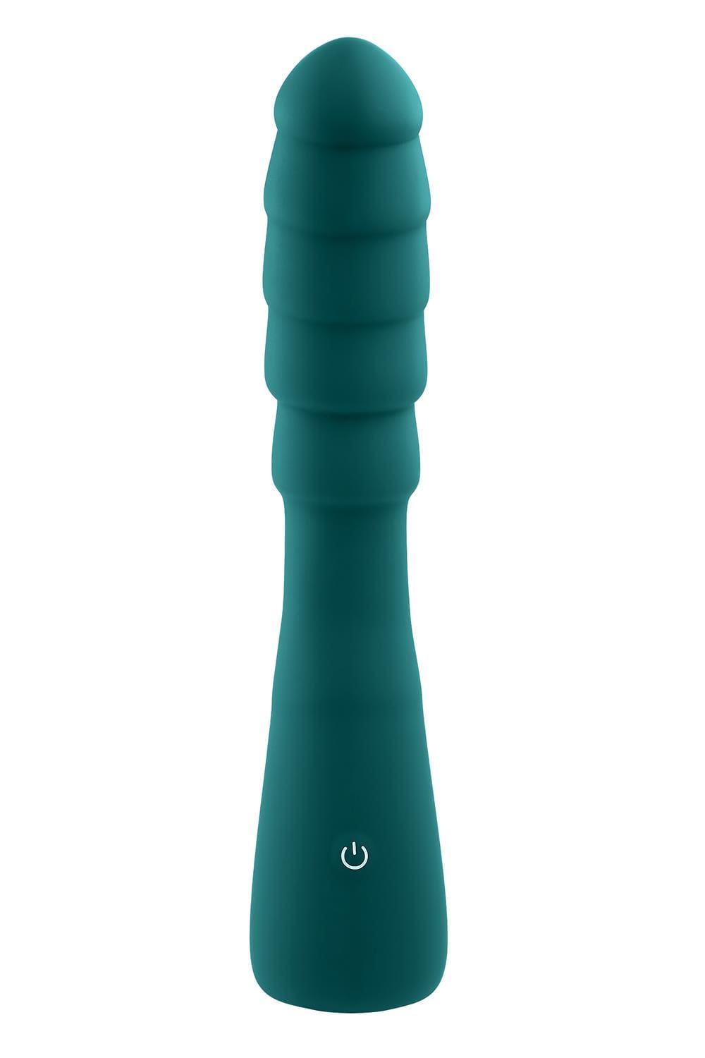 Część podstawy ma masywną, antypoślizgową formę, która zapewnia pewny chwyt i wygodne sterowanie urządzeniem. Dzięki ergonomicznej konstrukcji wibrator pozostaje stabilny i łatwy w obsłudze nawet podczas intensywnego użytkowania.